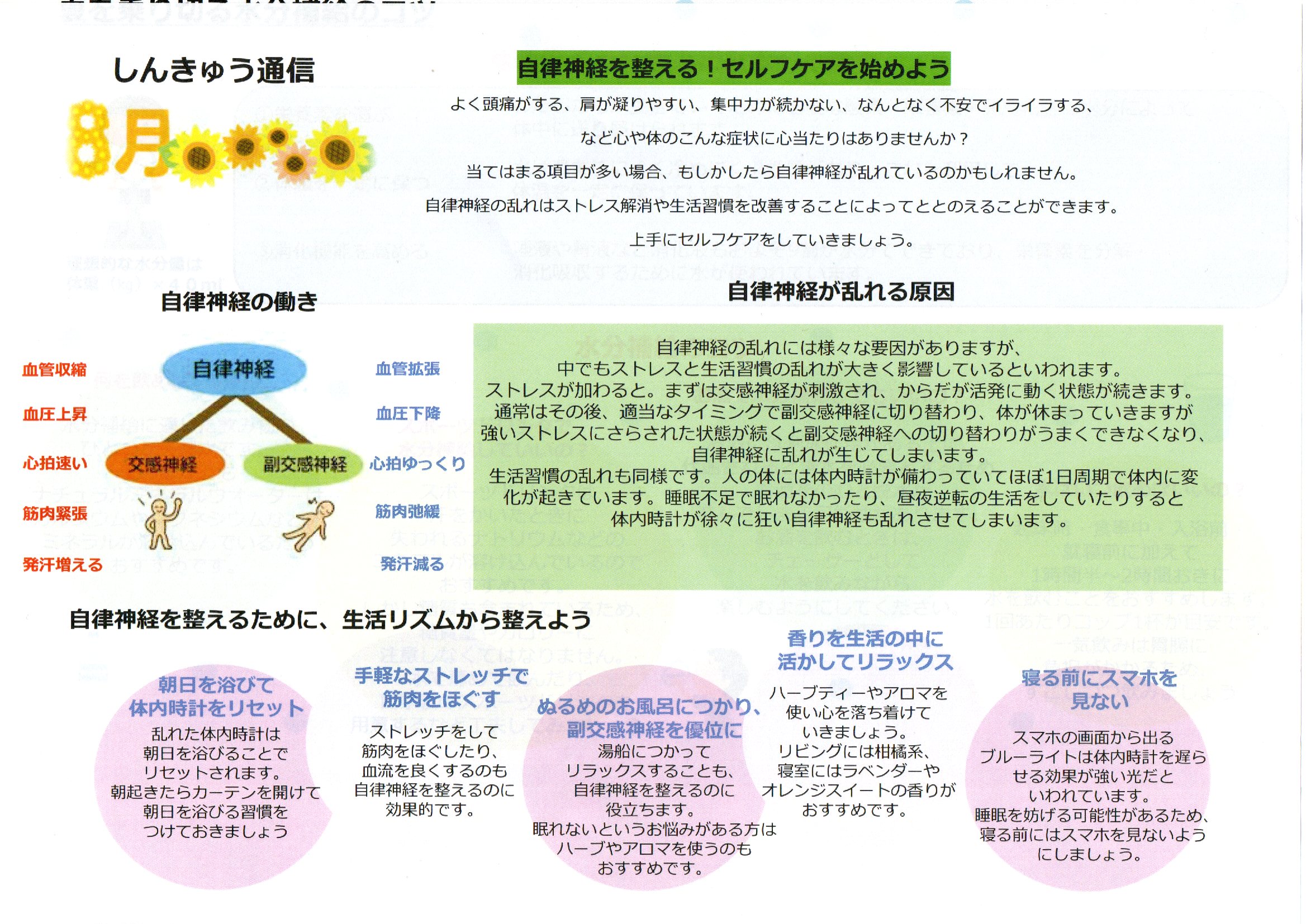 自律神経は、一定のリズムを好むため、できるだけ規則正しい生活を送ること。